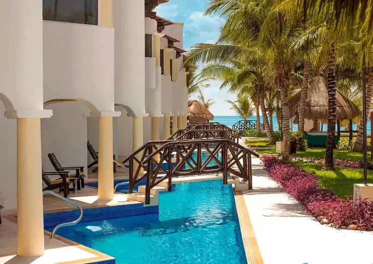 For guests who want instant access to the action, the Oceanview Swim-Up Junior Suite delivers the ultimate resort-level indulgence. These suites feature a private terrace with direct swim-up pool access, allowing you to step straight from your room into the water perfect for daytime lounging, social vibes, and effortless fun.
